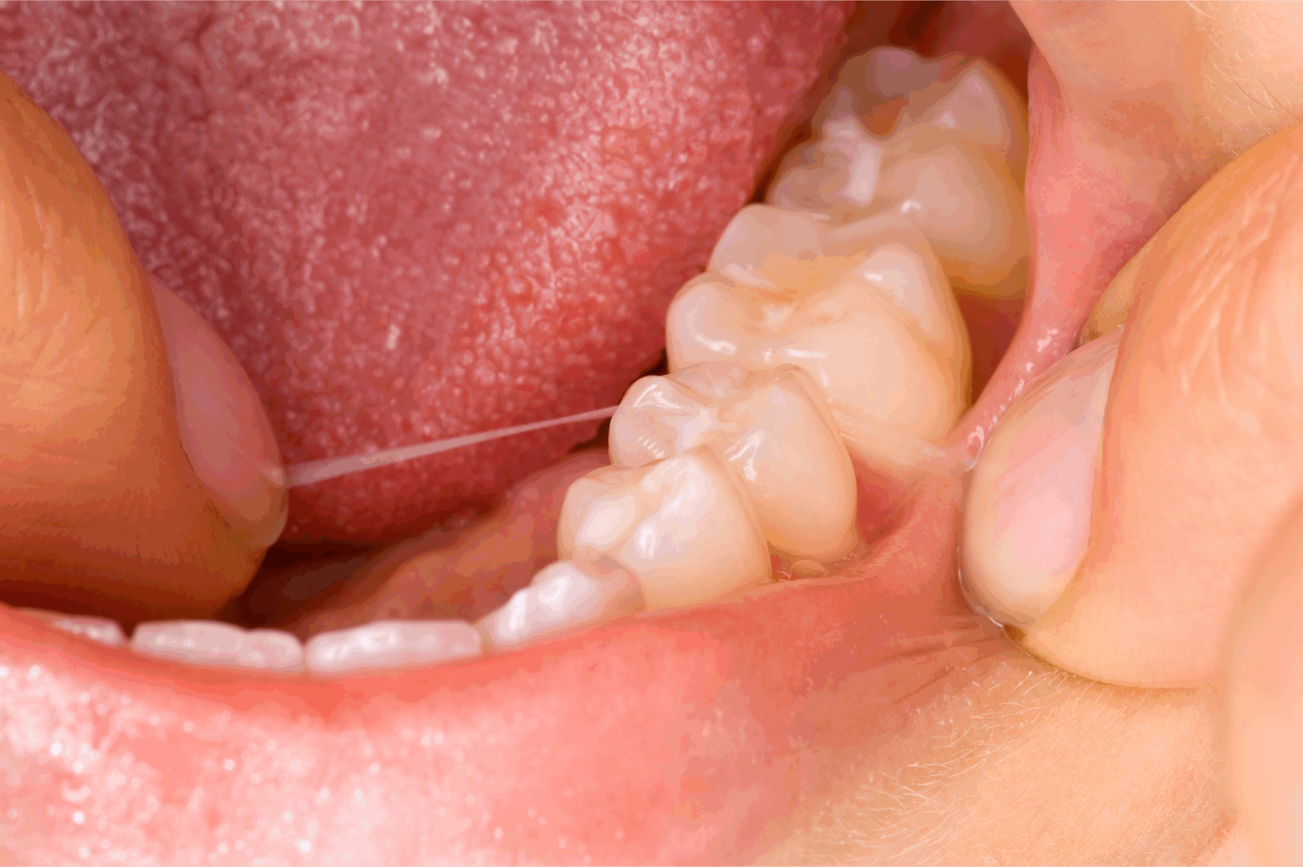 치실을 사용할 때는 과도한 힘을 주지 말고 부드럽게 넣고 빼야 합니다.