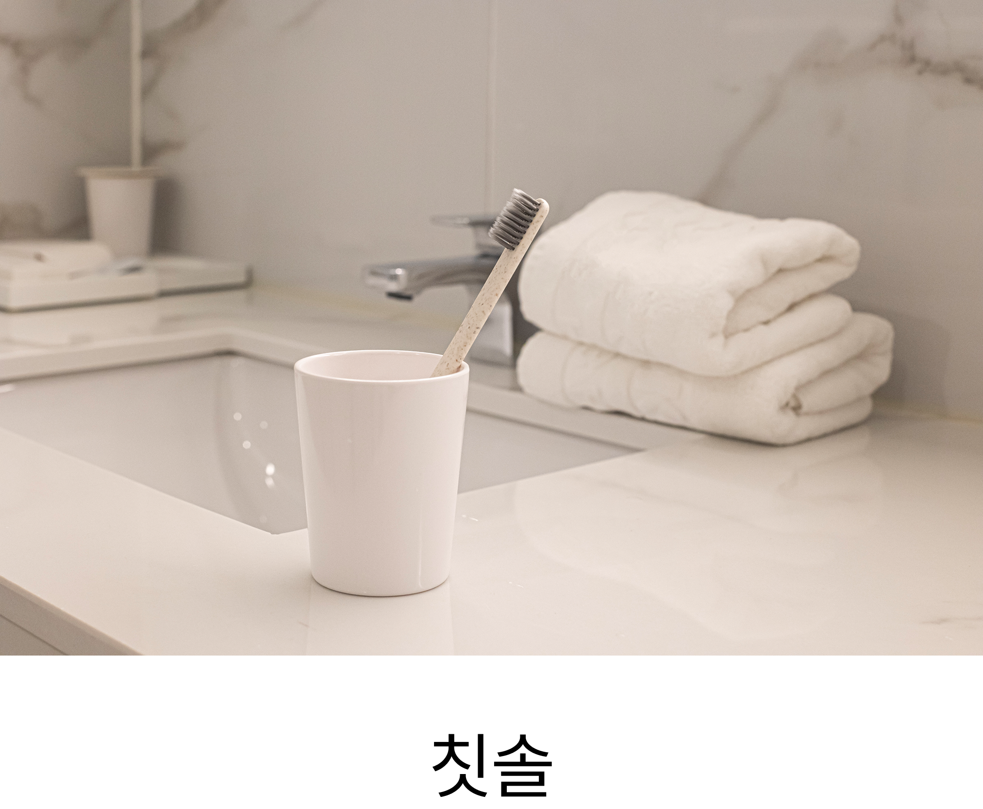 1. 칫솔 사용 후 깨끗이 헹군 뒤, 칫솔모가 위로 향하도록 통풍이 잘 통하는 곳에 두세요.